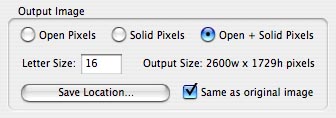 NOTE 2: The text analysis only applies to the output process you are using (open or solid pixels). If you change this setting, the text will need to be re-analyzed.
